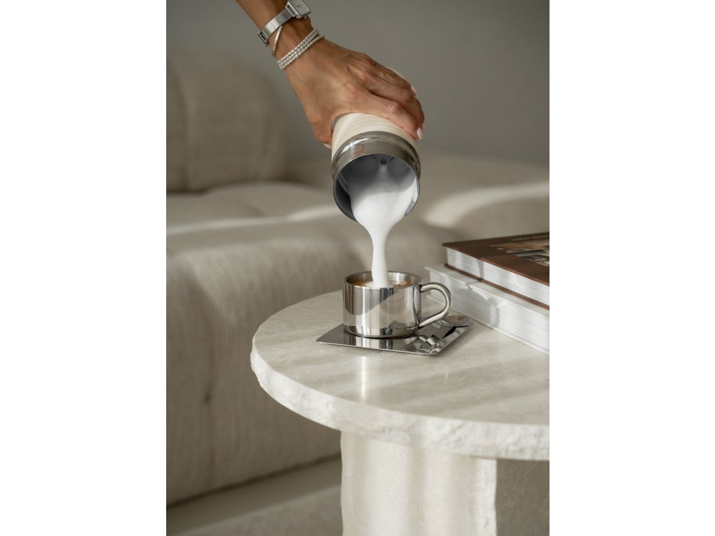 Cappuccino chutná nejlépe, když má svůj prostor i design. Set hrnku, podtácku a lžičky, který byl stvořen pro nadýchanou mléčnou pěnu a tvůj dokonalý ranní rituál. Elegantní tvar zvýrazní vrstvení kávy a pěny, takže si vychutnáš kávu i očima.